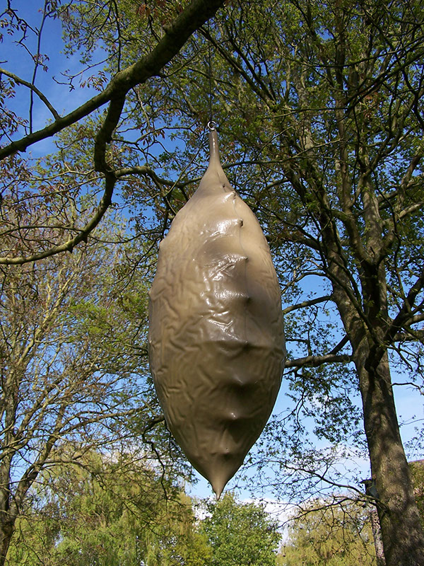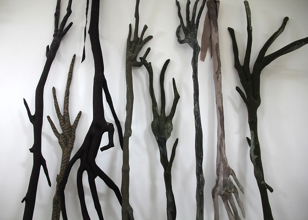Lange armen en vingers in de vorm van takken reiken bijna tot op de grond als luchtwortels. Een metafoor voor ontheemden die zoeken naar een nieuwe toekomst, maar ook nog verbonden zijn met hun vaderland, de boom.