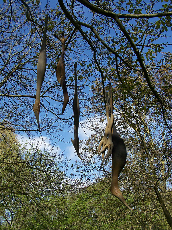 Lange armen en vingers in de vorm van takken reiken bijna tot op de grond als luchtwortels. Een metafoor voor ontheemden die zoeken naar een nieuwe toekomst, maar ook nog verbonden zijn met hun vaderland, de boom.2