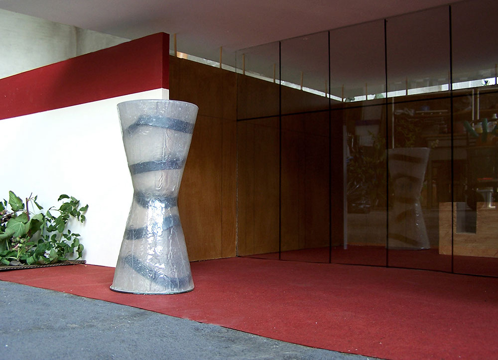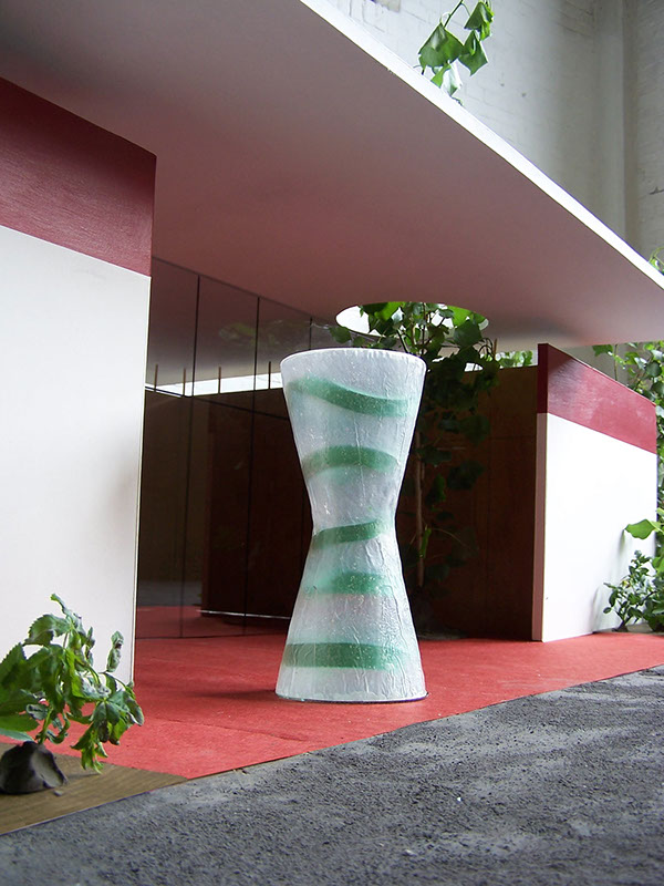 Eindig / oneindig, zijn de kernwoorden bij het ontwerp. Ik wilde deze begrippen bij elkaar brengen door ze als mathematische figuren in elkaar op te sluiten. Een transparante zandlopervorm, met ingesloten Ringen van Möbius.