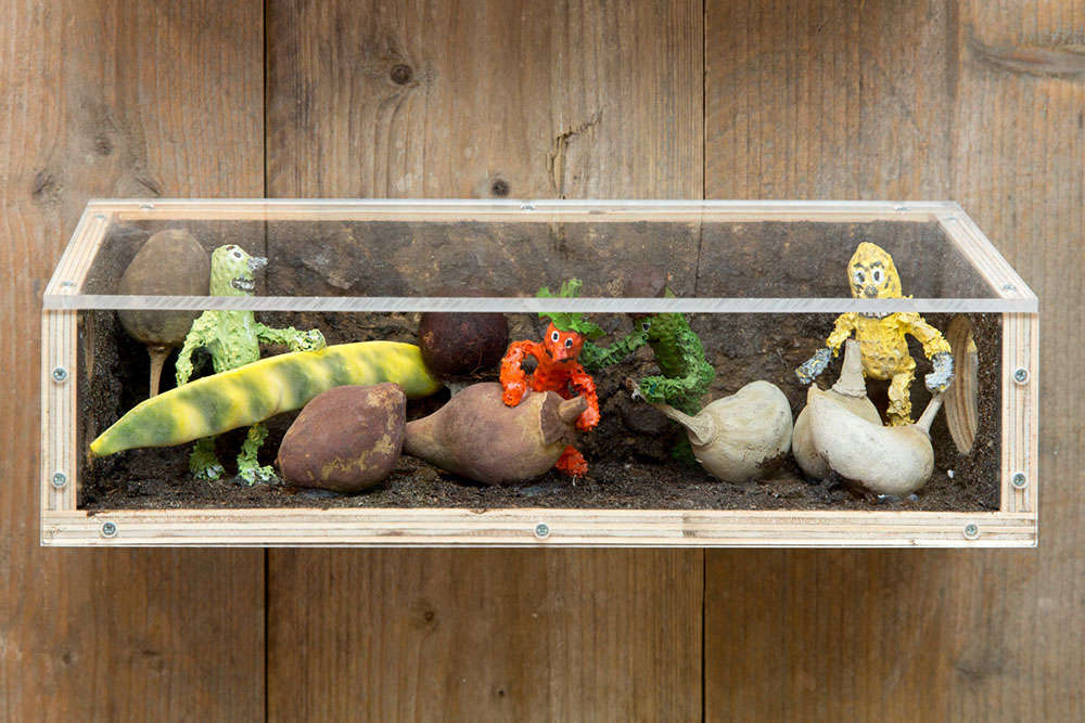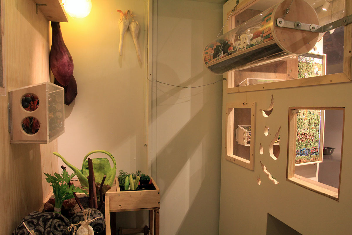 Installatie HALLO GROENTEN, de Installatie HALLO GROENTEN, de groentekraam, voor Villa Zebra Rotterdam. In samenwerking met Agnes Roothaan.